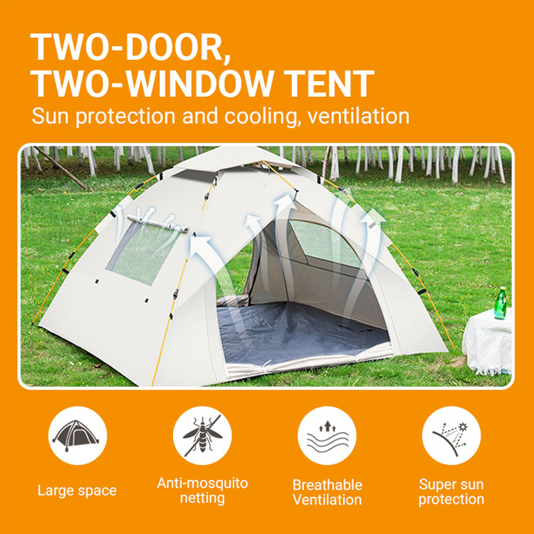 Perfekt for camping, fotturer, strandturer, grillfester i bakgården og utendørsfestivaler. Den ventilerte designen med nettingvinduer sørger for komfortabel luftstrøm under forskjellige værforhold.
