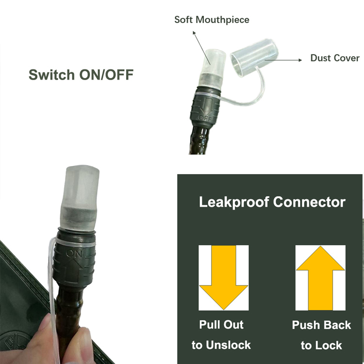 Har innovativ magnetisk hurtigkoblingsteknologi med dobbel forsegling som automatisk tetter ved kontakt, og eliminerer lekkasjerisiko under løping, sykling og høybevegelsesaktiviteter.
