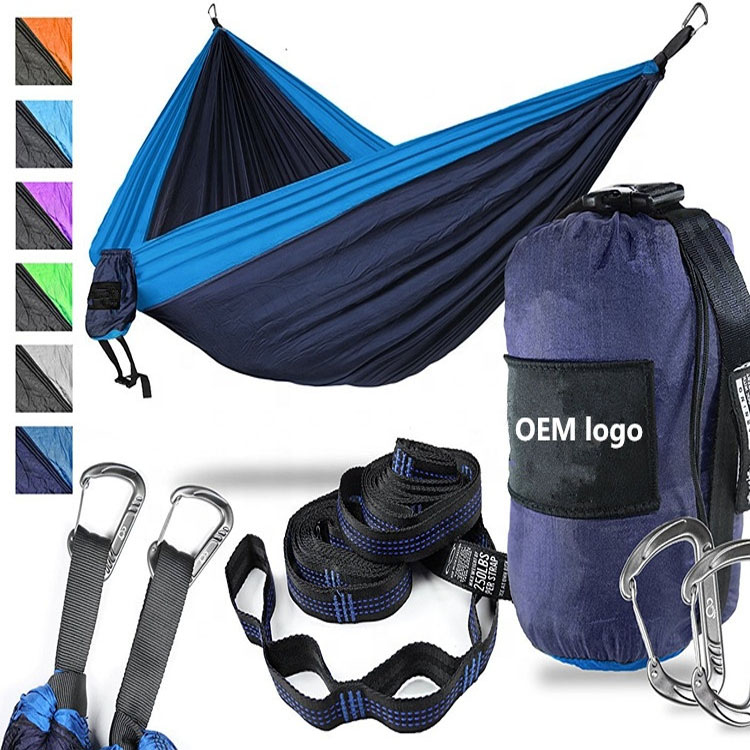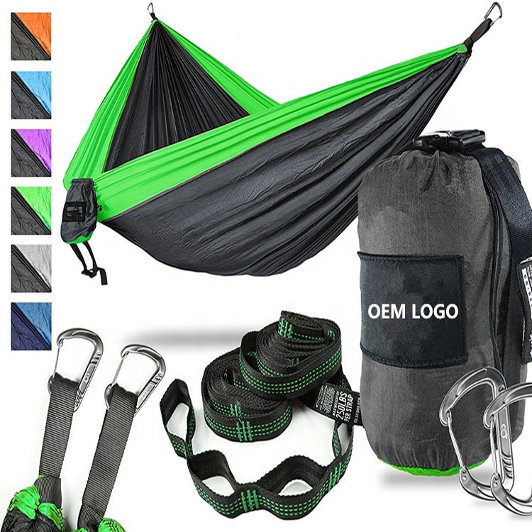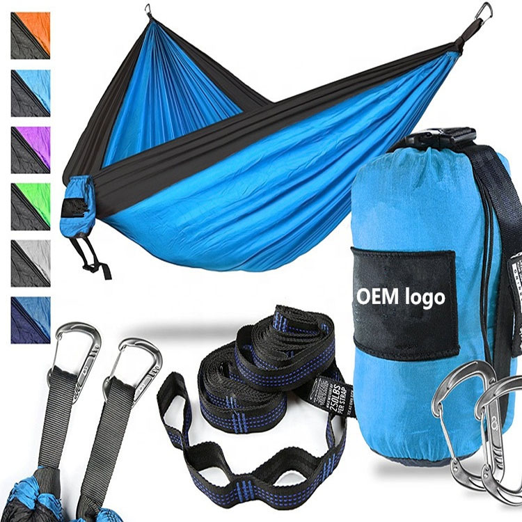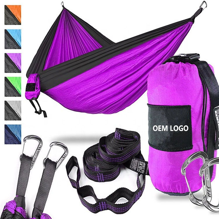 Backpacking Travel Dobbel fallskjerm Campinghengekøye. Ditt førsteklasses valg for utendørs komfort og eventyr. Denne fallskjermhengekøyen av høy kvalitet er konstruert for både enkelt- og dobbeltrom. Perfekt for ryggsekk og reiser, den kombinerer slitesterke materialer med overlegen bærbarhet for uforglemmelige utendørsopplevelser.