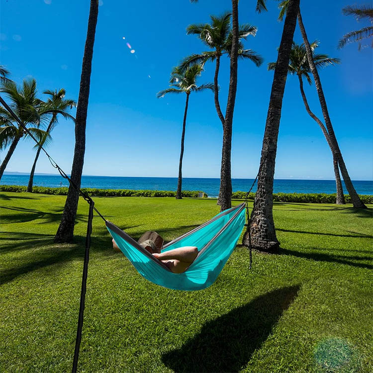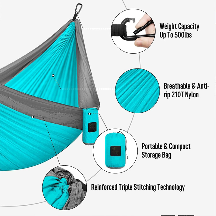 Denne hengekøyen er laget av autentisk 70D ripstop-nylon med diamantvevmønster, og gir den perfekte balansen mellom styrke, pusteevne og hurtigtørkende ytelse for ulike værforhold.