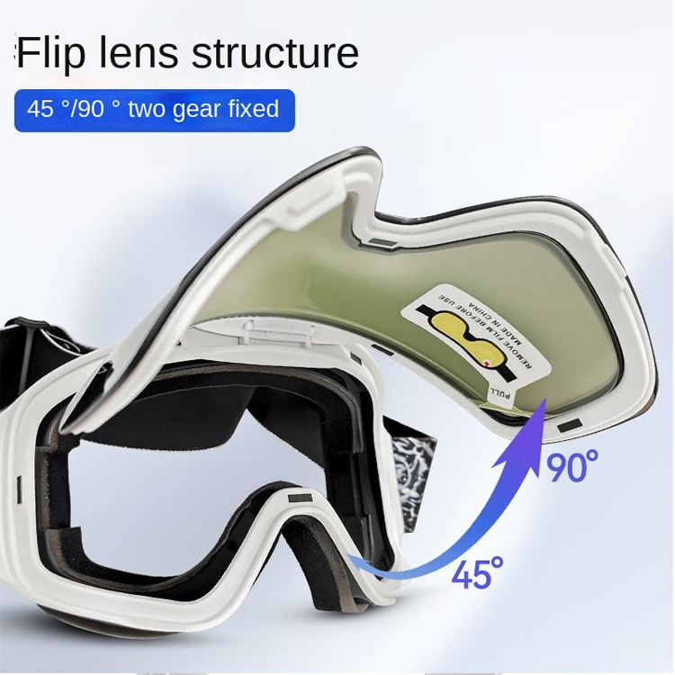Tilpassede unisex støvtette vindtette UV400 snowboardbriller. Din førsteklasses grossistløsning for allværs fjellsport. Disse unisex snowboardbrillene kombinerer avansert støvtett og vindtett beskyttelse med UV400-teknologi. Med speilpolariserte linser og et revolusjonerende magnetisk flipsystem gir de uovertruffen visuell klarhet for ski og snowboard.