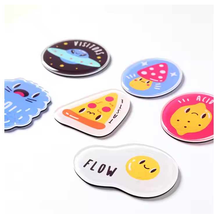 Laget av høykvalitets akryl med et blankt epoksybelegg, er disse kjøleskapsmagnetene ikke bare visuelt slående, men også bygget for å vare. Den glatte overflaten er motstandsdyktig mot falming, riper og daglig slitasje, noe som sikrer langvarig bruk.