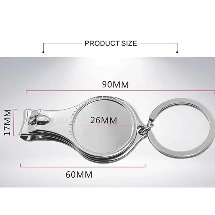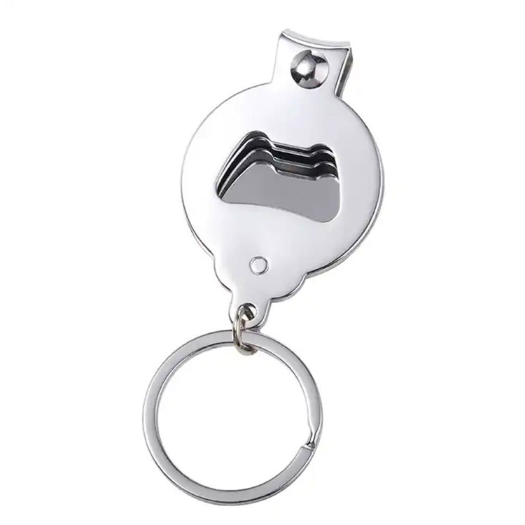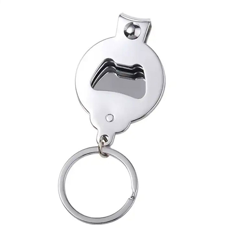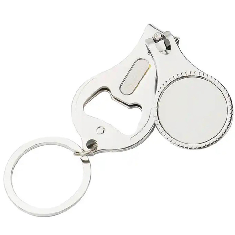 Sammenleggbar håndtååpner nøkkelring neglesakser neglekuttere. Holdbar multifunksjons sammenleggbar nøkkelring med neglesaks, flaskeåpner og nøkkelholder, perfekt for reise og hverdagsbruk. Sublimeringsblank overflate tillater tilpassede logoer eller design, noe som gjør det til en ideell salgsfremmende gave eller personlig tilpasset tilbehør.