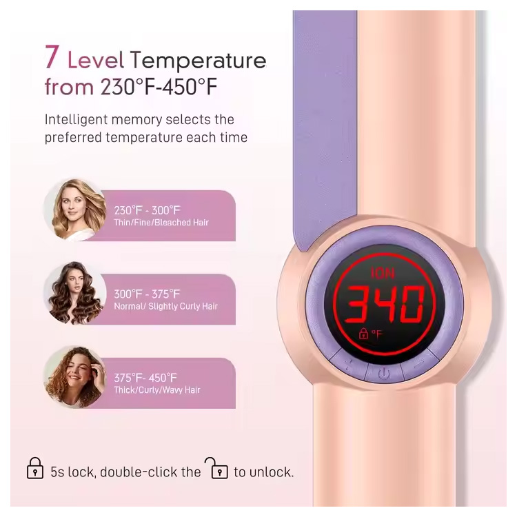 Har tilpassbare varmeinnstillinger for å passe fint, middels eller grovt hår. Enten du retter, krøller eller vinker, kan du velge den ideelle temperaturen for å style effektivt uten å risikere varmeskader.