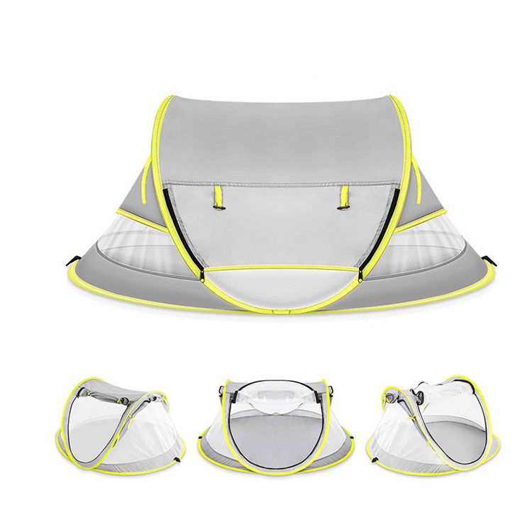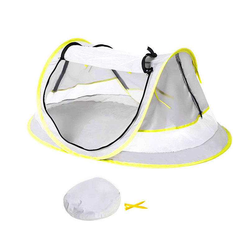 Lett enkeltlags vanntett pop-up-telt i polyester. Ditt ultimate sommerstrandly for familieeventyr. Dette lette pop-up-teltet har ettlags vanntett polyesterkonstruksjon, og har plass til fire personer. Perfekt for strandutflukter og sesongbasert camping, den kombinerer raskt oppsett med pålitelig værbeskyttelse.