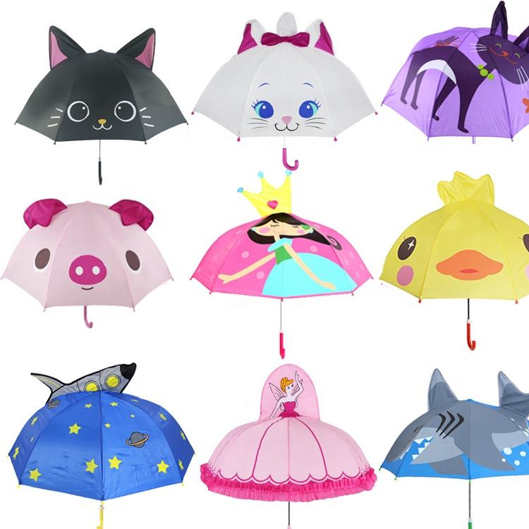 Manuell karakter Tilpass barn 3D tegneserieparaply for barn. Populært salg Søt katt, rev, prinsesse og tegneseriefigur Design Barn’s 3D-paraply har en 17''\*8K manuell rett ramme. Det er morsomt og funksjonelt, og tilbyr tilpasningsmuligheter, noe som gjør regnværsdager lekne og stilige for barn i alle aldre.