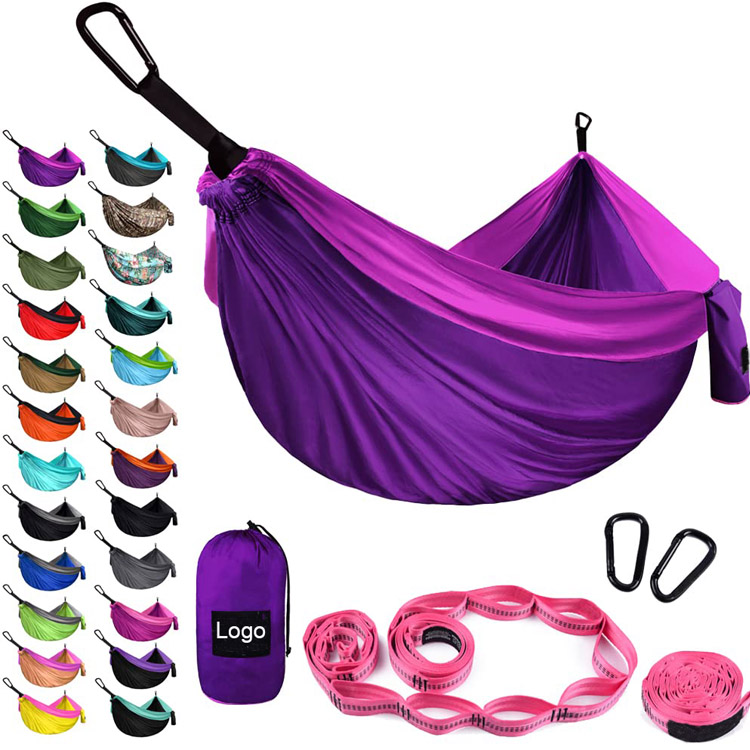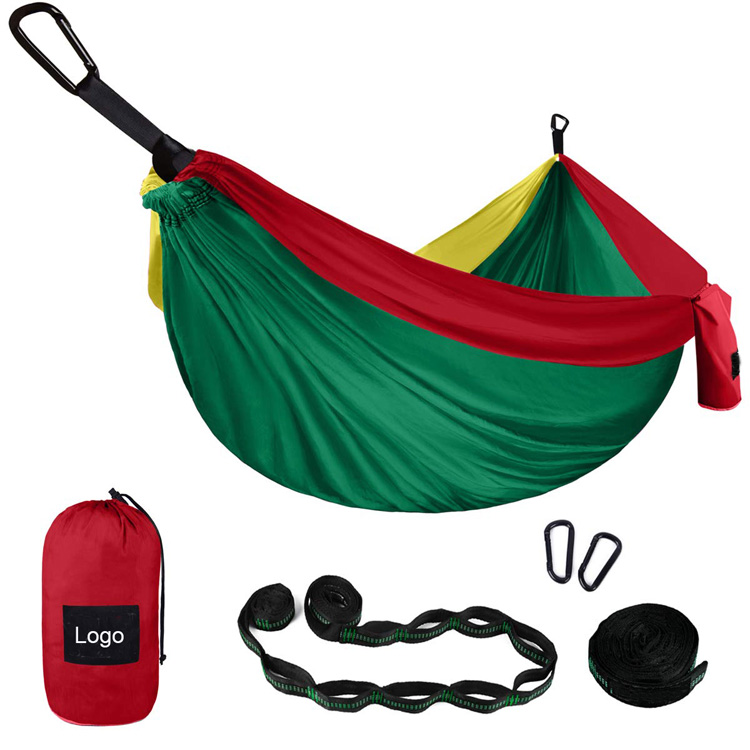Nylonstoff Camping Bærbar Ultralett luksushengekøye. Ditt ultimate luksustilfluktssted i villmarken. Denne siste utendørs hengekøyen kombinerer premium nylonstoff med ultralett bærbarhet. Perfekt for ryggsekktur, camping og reiser, den gir overlegen komfort og stil for utendørseventyrene dine.