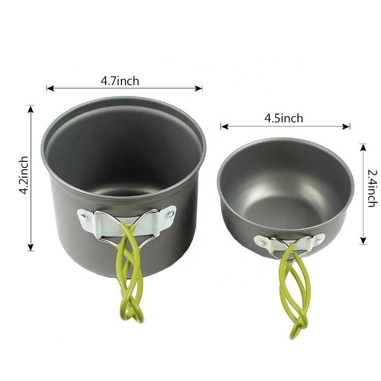 Utendørs Bærbar Camping Vandring Ryggsekk Kokeutstyr Sett. Din ultimate kompakte matlagingsløsning for utendørseventyr. Dette varme kokekarsettet er designet for 1-2 personers camping- og fotturer. Perfekt for backpacking og nødberedskap, den kombinerer essensielle matlagingsverktøy med maksimal portabilitet.