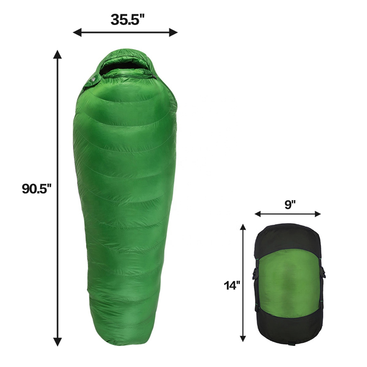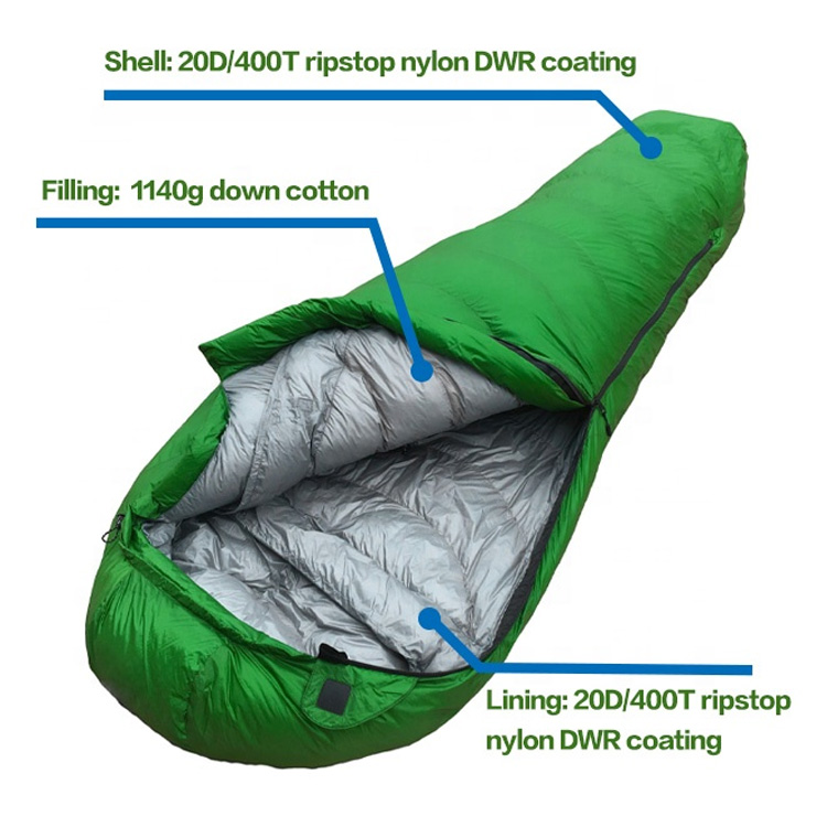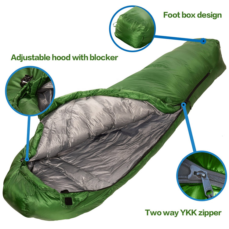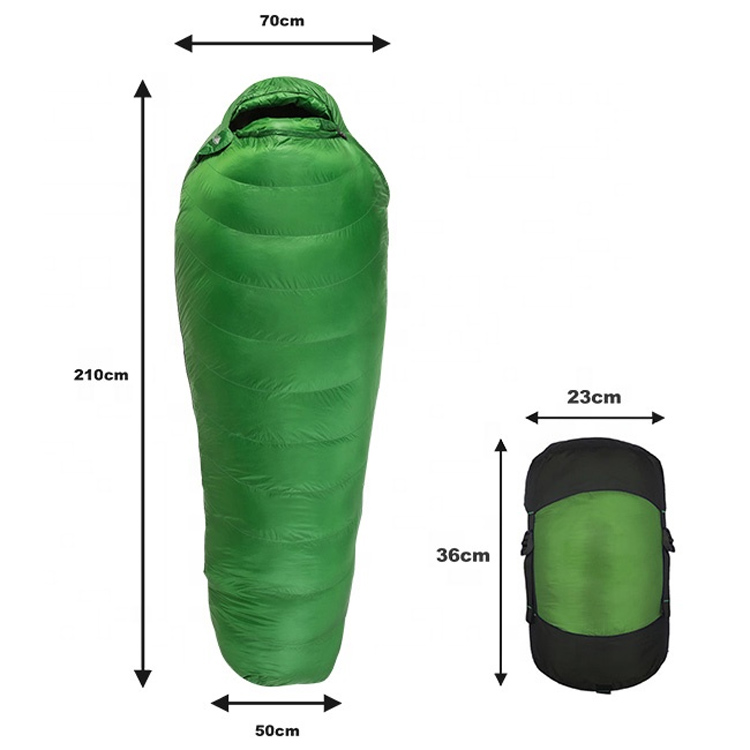 Utendørs Ultralett bærbar Mummi-sovepose i kaldt vær. Din ultimate søvnløsning for kaldt vær for villmarkseventyr. Denne ultralette mamma-soveposen har førsteklasses and-gåsedun-isolasjon for maksimal varme. Designet for seriøs camping, kombinerer den eksepsjonell termisk effektivitet med minimal pakkevekt.