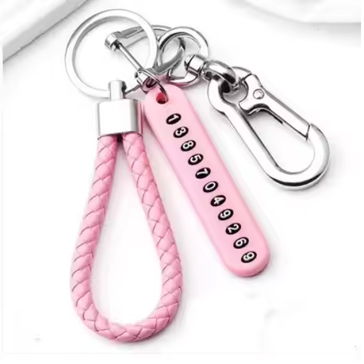 Plate nøkkelkjede kortnummer Personlighetsnummerkort. Stylish anti-mistet nøkkelring med tilpasset telefonnummerplate, flettet PU-skinnsløyfe og slitesterk metallkrok, ideell for å tilpasse poser, nøkler eller ryggsekker. Et kreativt og funksjonelt tilbehør for hverdagsbruk eller gaveformål.
