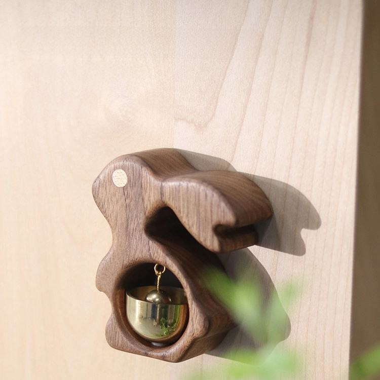 Helt tre kanin kjøleskapsmagneter Håndlaget messing dørklokke.2025 Nytt design Naturlig massivt tre kanin kjøleskapsmagneter har håndlaget messingklokke med skarp, klar lyd. Ideell som en unik hjemmeinnredning eller festgave til bryllup, diwali, ramadan og andre spesielle anledninger.