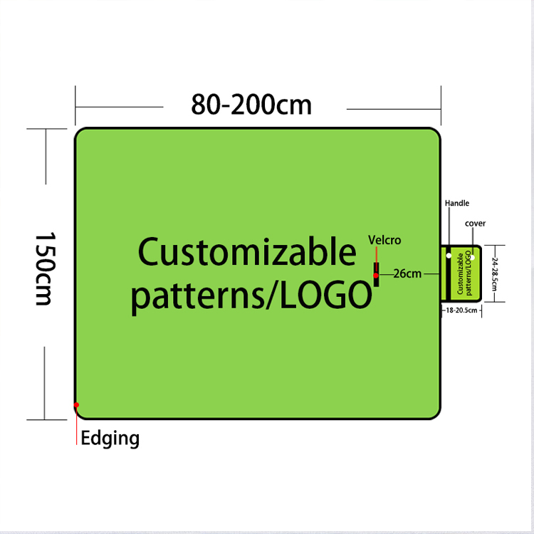 Reisecampingtilbehør Piknikteppe Egendefinert piknikmatte. Din førsteklasses reisefølge for utendørskomfort. Denne tilpassbare piknikmatten har en stor, tykk design med overlegen vanntett beskyttelse. Ekspert utformet for camping og piknik, den kan foldes kompakt for enkel portabilitet på alle dine eventyr.